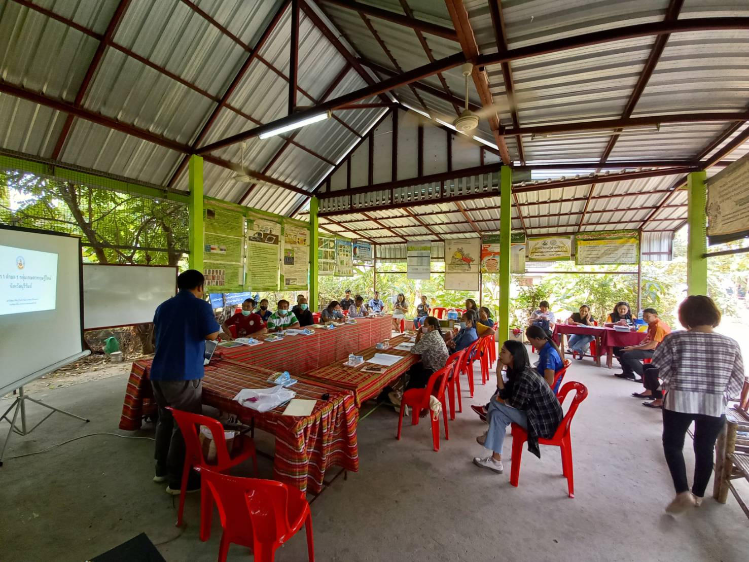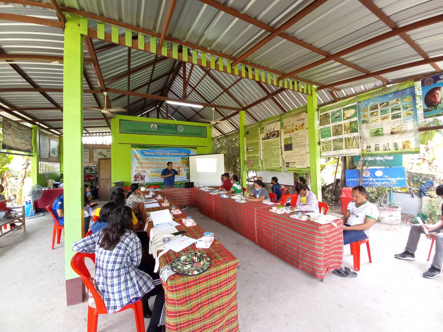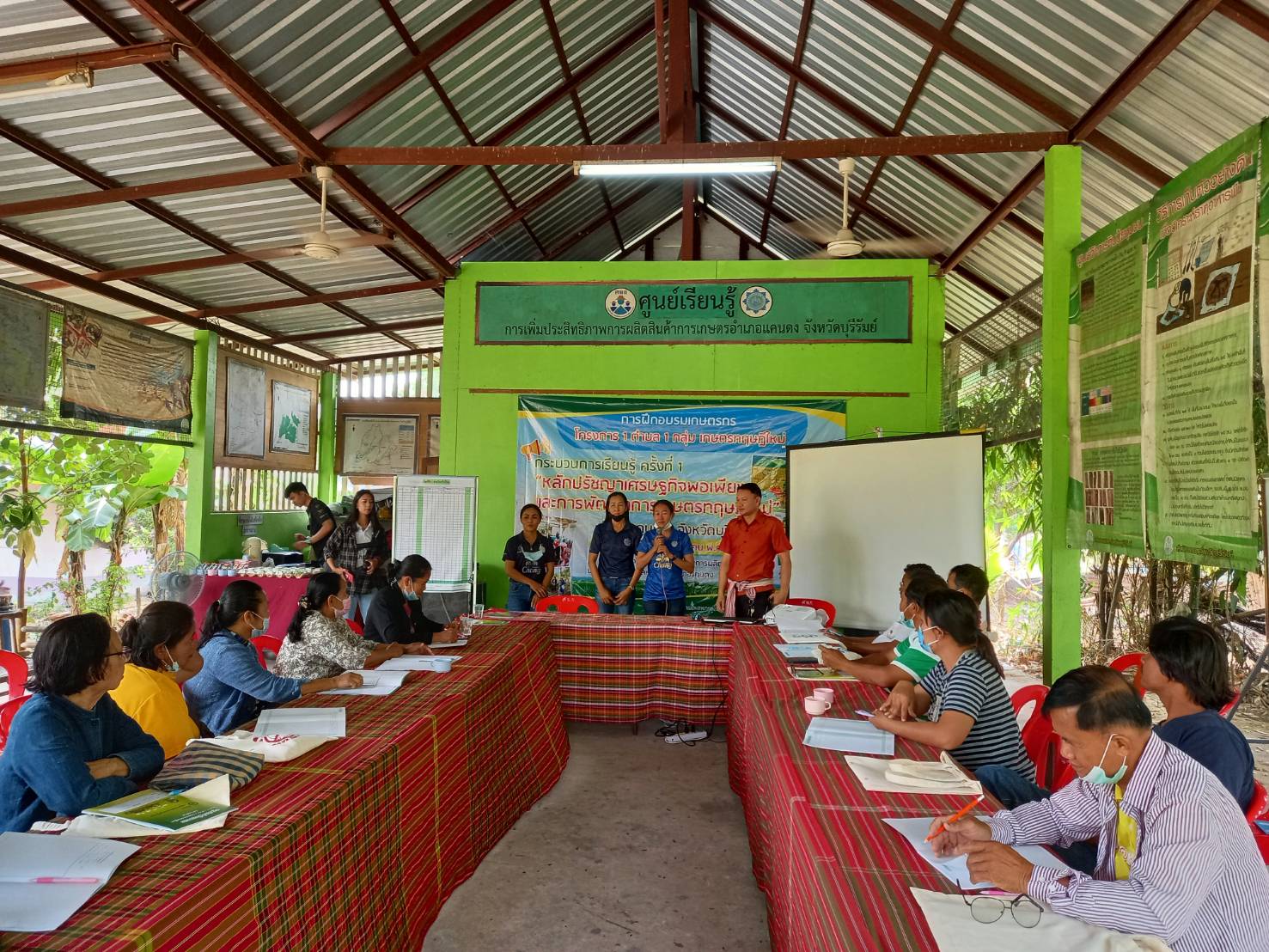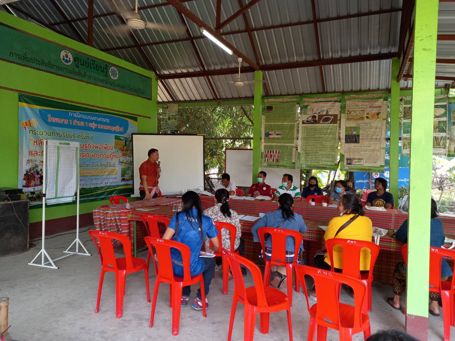 วันที่ 16 มีนาคม 2564 สถานีพัฒนาที่ดินบุรีรัมย์ ลงพื้นที่เพื่อเป็นวิทยากรในการอบรมเกษตรกรภายใต้โครงการ 1 ตำบล 1 กลุ่มเกษตรทฤษฎีใหม่ บรรยายหัวข้อ แนวคิด หลักการ และรูปแบบของเกษตรทฤษฎีใหม่ : การบริหารจัดการน้ำด้วยระบบและวิธีการที่เป็นมิตรต่อสิ่งแวดล้อม และการเตรียมความพร้อมเกษตรกร/จ้างงานระดับตำบลกิจกรรมการพัฒนาพื้นที่ (การขุดสระน้ำ)/การคำนวณปริมาณคิวดิน ให้แก่เกษตรกรที่เข้าร่วมโครงการฯ เพื่อเสริมสร้างความรู้ความเข้าใจของหลักปรัชญาของเศรษฐกิจพอเพียงมาประยุกต์ใช้ในการพัฒนาการเกษตรของตนได้ จำนวน 15 ราย และจ้างงาน จำนวน 6 ราย ของตำบลหัวฝาย อำเภอแคนดง จังหวัดบุรีรัมย์ ณ ศูนย์เรียนรู้การเพิ่มประสิทธิภาพการผลิตสินค้าเกษตร (ศพก.) ตำบลหัวฝาย อำเภอแคนดง จังหวัดบุรีรัมย์