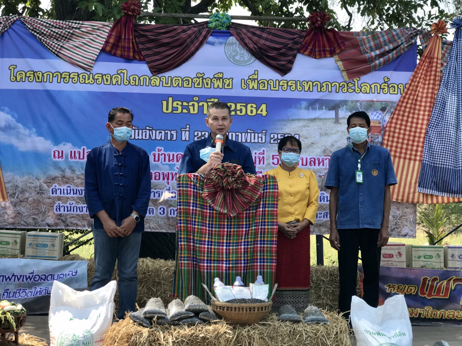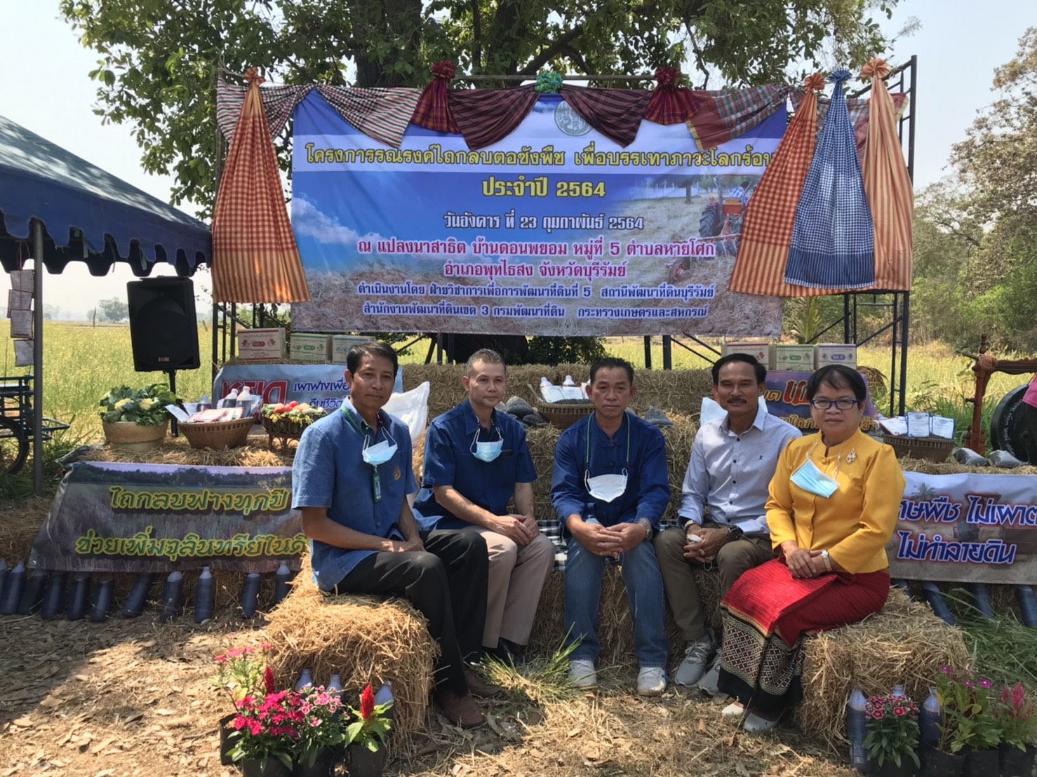 วันที่ 23 กุมภาพันธ์ 2564 สถานีพัฒนาที่ดินบุรีรัมย์ โดย นายเกรียงไกร ไชยโพธิ์ ผู้อำนวยการสถานีพัฒนาที่ดินบุรีรัมย์ พร้อมด้วย นางสาวทองสวย พบบุญ นักวิชาการเกษตรชำนาญการ ดำเนินงานโครงการรณรงค์ไถกลบตอซังพืช เพื่อบรรเทาภาวะโลกร้อน ประจำปี 2564 โดยมีวัตถุประสงค์เพื่อเป็นการปรับเปลี่ยนความคิดจากการเผาตอซังหลังเก็บเกี่ยว มาเป็นการไถกลบตอซังและพืชปุ๋ยสดแทน เพื่อปรับปรุงโครงสร้างของดินเพิ่มธาตุอาหารในดินให้มีความอุดมสมบูรณ์ ลดต้นทนการผลิตในด้านการใช้ปุ๋ยเคมี สารเคมีกำจัดวัชพืช ซึ่งส่งผลต่อสุขภาพของพี่น้องเกษตรกรที่ดีและปลอดภัย อีกทั้งเป็นการใส่ใจต่อสิ่งแวดล้อม ณ แปลงนาสาธิต บ้านดอนพยอม หมู่ที่ 5 ตำบลหายโศก อำเภอพุทไธสง จ.บุรีรัมย์ โดยมีนายนิมิต ปัถมเจริญ นายอำเภอพุทไธสง เป็นประธานกล่าวเปิดงาน ซึ่งมีหัวหน้าส่วนราชการ ผู้นำชุมชน เกษตรกรและประชาชนในพื้นที่ ร่วมให้ความสนใจในกิจกรรมในครั้งนี้ จำนวน 150 ราย