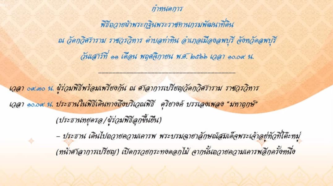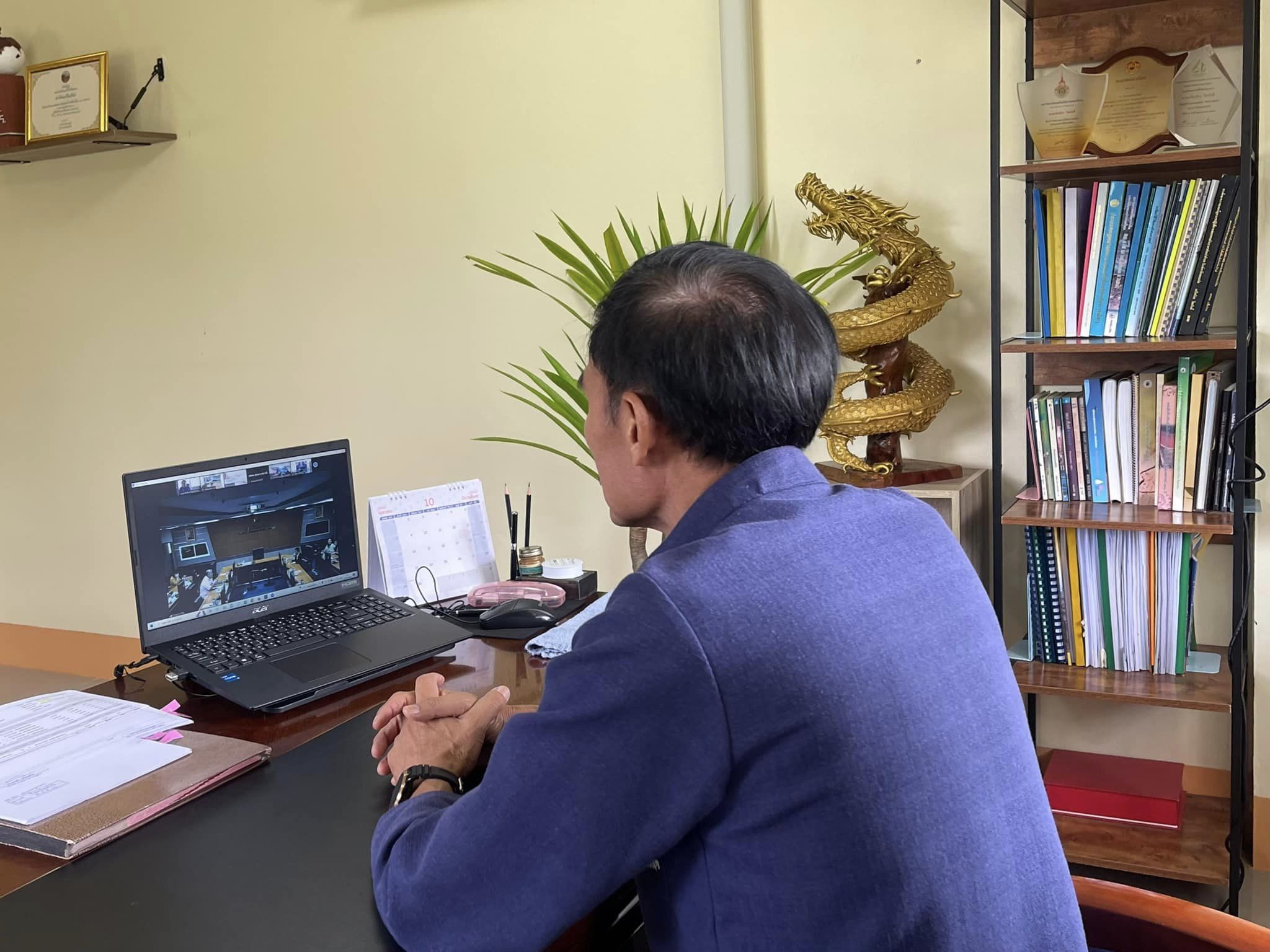 วันที่ 25 ตุลาคม 2566 เวลา 10.00 น สถานีพัฒนาที่ดินบุรีรัมย์ โดยนายเกรียงไกร ไชยโพธิ์ ผู้อำนวยการสถานีพัฒนาที่ดินบุรีรัมย์ ร่วมประชุมคณะกรรมการดำเนินงานพิธีถวายผ้าพระกฐินพระราชทาน ประจำปี 2566 ครั้งที่ 2/2566 ผ่านระบบออนไลน์ด้วยโปรแกรม Zoom Cloud Meeting ณ ห้องประชุมสถานีพัฒนาที่ดินบุรีรัมย์ โดยมี นายปราโมทย์ ยาใจ อธิบดีกรมพัฒนาที่ดิน เป็นประธานการประชุม มีวัตถุประสงค์เพื่อแจ้งให้คณะกรรมการดำเนินงานทราบกำหนดผู้เข้าร่วมพิธีถวายผ้าพระกฐินพระราชทาน การเตรียมสถานที่จัดงาน และอาหารสำหรับผู้เข้าร่วมงาน และร่วมพิจารณาค่าใช้จ่ายและเงินทำบุญถวายผ้าพระกฐินพระราชทานกรมพัฒนาที่ดิน ประจำปี 2566 ซึ่งกรมพัฒนาที่ดิน ได้รับพระราชทานผ้าพระกฐินนำไปถวาย ณ วัดกวิศรารามราชวรวิหาร ตำบลท่าหิน อำเภอเมืองลพบุรี จังหวัดลพบุรี ในวันเสาร์ที่ 11 พฤศจิกายน 2566 ตรงกับวันแรม 13 ค่ำ เดือน 11 เวลา 10.09 น. เพื่อให้การดำเนินงานพิธีถวายผ้าพระกฐินพระราชทาน เป็นไปด้วยความเรียบร้อย