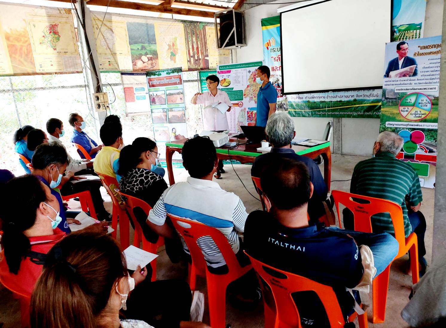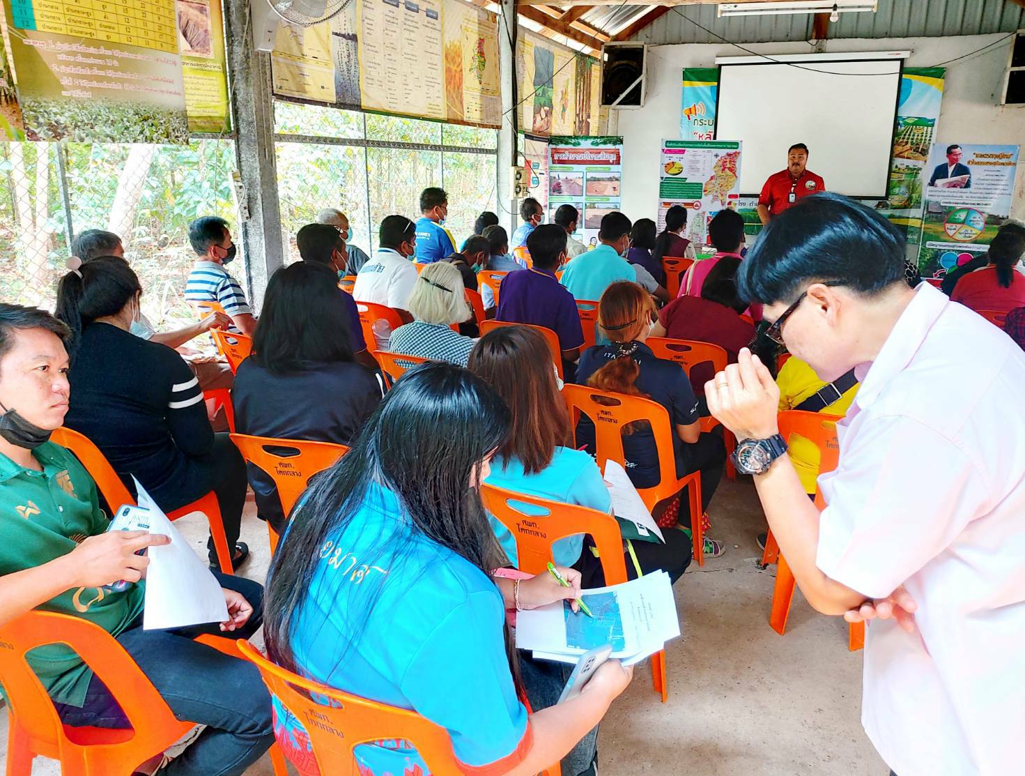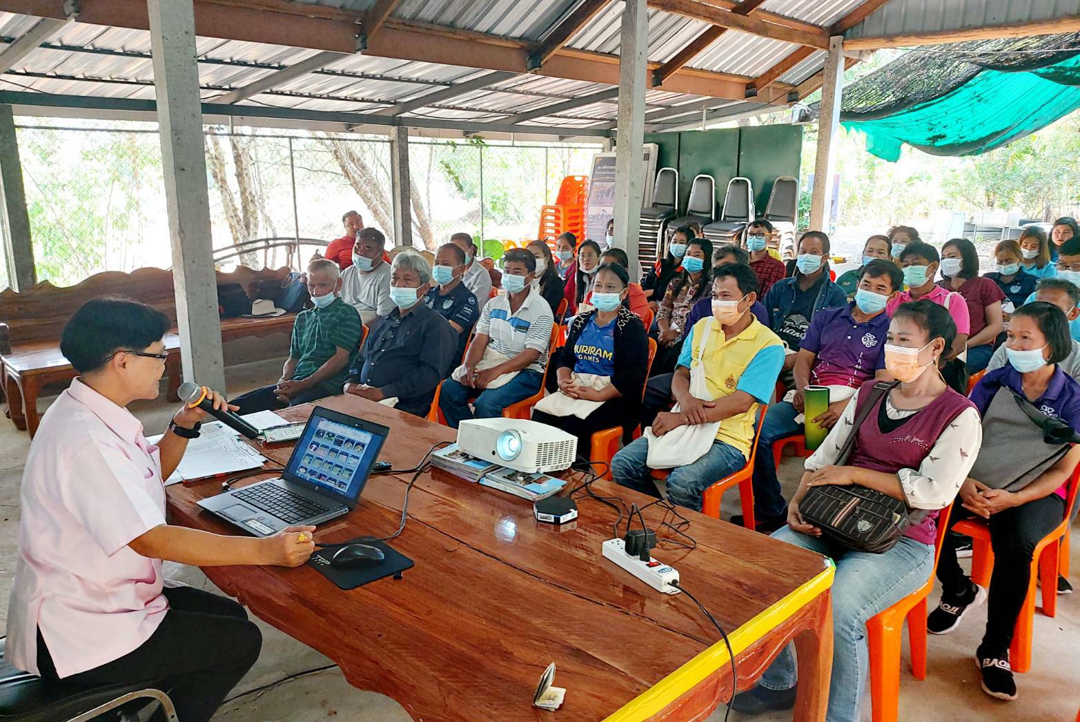 วันที่ 4 มีนาคม 2564 สถานีพัฒนาที่ดินบุรีรัมย์ ลงพื้นที่เป็นวิทยากรในการอบรมเกษตรกรภายใต้โครงการ 1 ตำบล 1 กลุ่มเกษตรทฤษฎีใหม่ โดย มีนายเกรียงไกร ไชยโพธิ์ ผู้อำนวยการสถานีพัฒนาที่ดินบุรีรัมย์ ได้บรรยายในหัวข้อ แนวคิด หลักการ และรูปแบบของเกษตรทฤษฎีใหม่ การบริหารจัดการน้ำด้วยระบบและวิธีการที่เป็นมิตรต่อสิ่งแวดล้อม และการเตรียมความพร้อมเกษตรกร/จ้างงานระดับตำบลกิจกรรมการพัฒนาพื้นที่ (การขุดสระน้ำ)/การคำนวณปริมาณคิวดิน ให้แก่เกษตรกรที่เข้าร่วมโครงการฯ/จ้างงาน ณ ตำบลเมืองแฝก และตำบลบุโพธิ์ อำเภอลำปลายมาศ จังหวัดบุรีรัมย์ จำนวน 60 ราย ณ ศูนย์เรียนรู้การเพิ่มประสิทธิภาพการผลิต สินค้าเกษตร (ศพก.) ตำบลโคกกลาง อำเภอลำปลายมาศ จังหวัดบุรีรัมย์