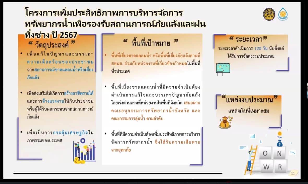 พด.บุรีรัมย์ เข้าร่วมรับฟังการประชุมชี้แจงหลักเกณฑ์และแนวทางการจัดทำข้อเสนอแผนงานโครงการเพิ่มประสิทธิภาพ การบริหารจัดการทรัพยากรน้ำ เพื่อรองรับสถานการณ์ภัยแล้งและฝนทิ้งช่วงปี 2567